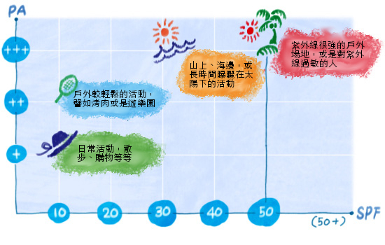 PA值是針對UVA隔離,一樣要依據紫外線強度跟活動來選擇