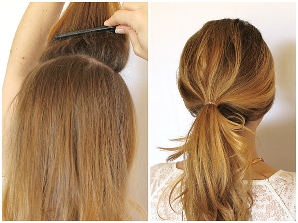 1. 將頭髮分前半後半,束起後半頭髮為馬尾