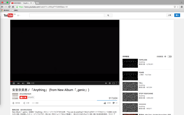 但如果大家是用其他瀏覽器打開影片的話,出來的畫面就跟一般的 MV 一樣了。