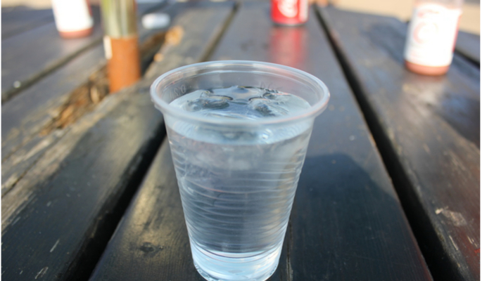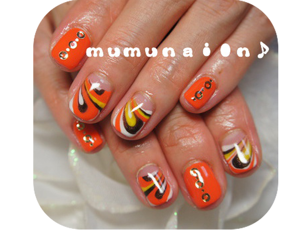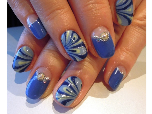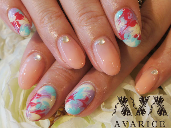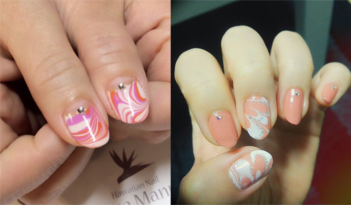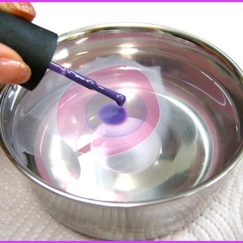 首先拿一杯水,將喜歡的指甲油滴入水中