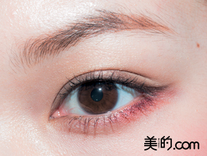 最後用帶有亮粉的淺色眼影,加強上下眼彩