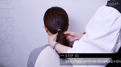 先用橡皮筋綁一個最簡單的馬尾