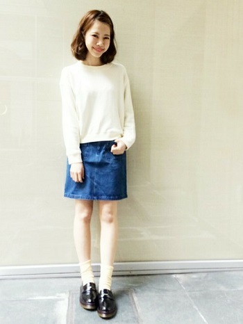 純白的襪子跟樂福鞋搭配