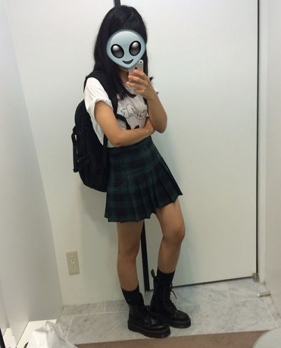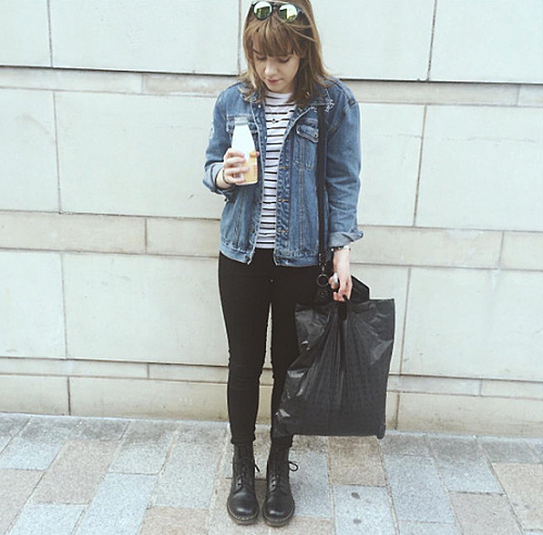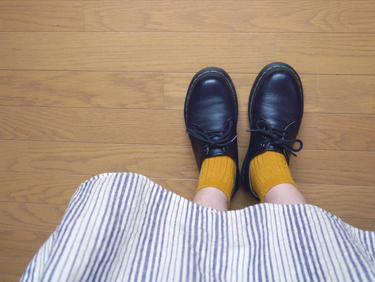 簡約的穿搭,配上馬丁鞋及中筒襪