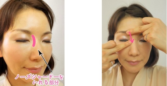 2. 接著沿著鼻樑往上推,推至眉頭時再用力壓住1秒