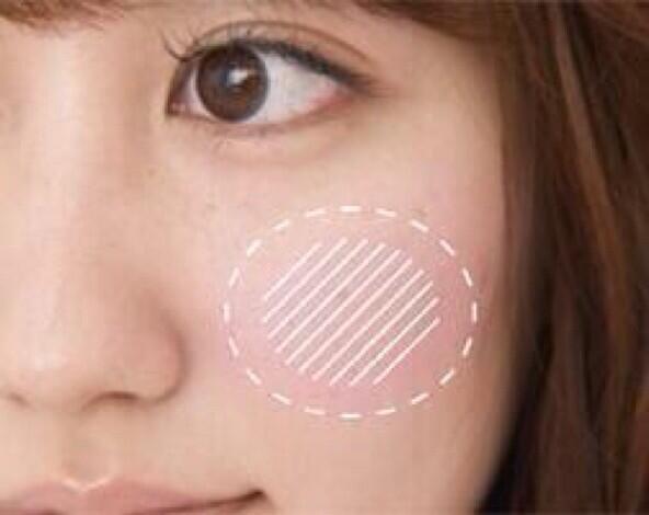 建議塗抹在顴骨下方的位置,如下圖班框起來的位置
