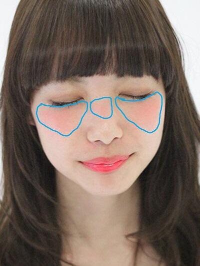 上的地方建議在眼睛下方以及鼻梁上,如同下圖