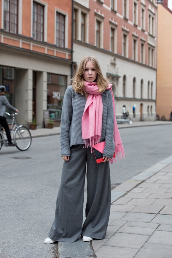 寬褲加上圍巾,打造出一種隨興飄逸的舒適感,