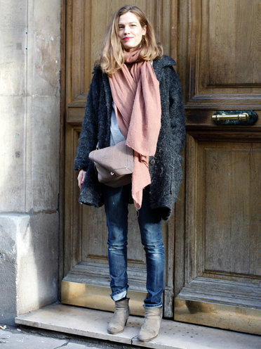 粉色的圍巾也有打亮臉部的效果,讓你看起來氣色更好。