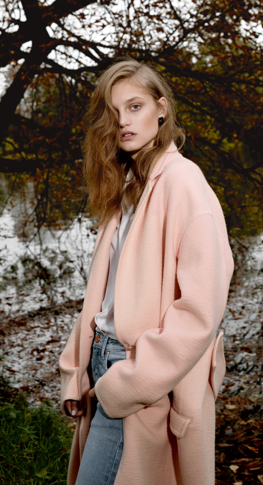 經典百搭的長大衣變成了粉紅色也毫無違和感!