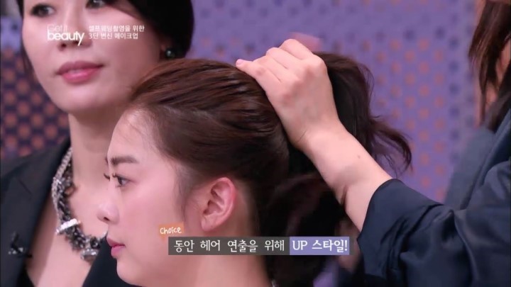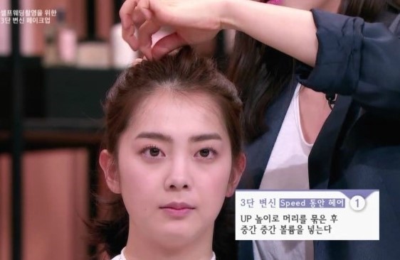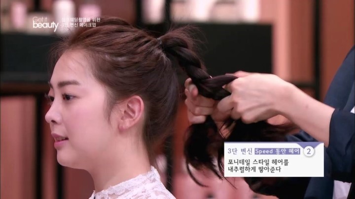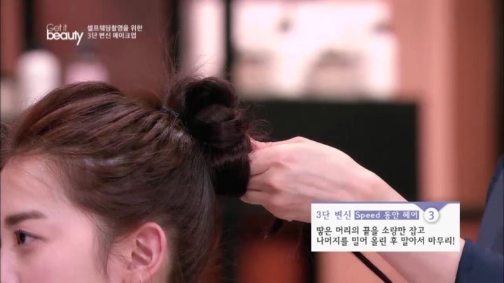 1. 綁個高高的馬尾,這邊重點是要用手去拉蓬頭頂