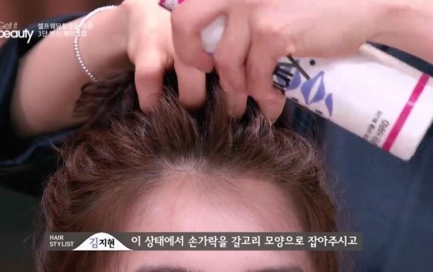3. 抓住少量髮尾(不是綁住的位置噢!),把剩下頭髮往頭一推擠