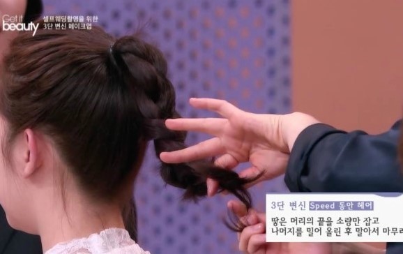 4. 整理一下包包頭形狀,然後把你剛剛死命抓住的那一小撮髮尾