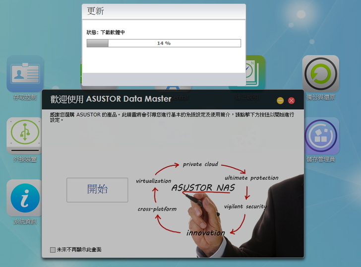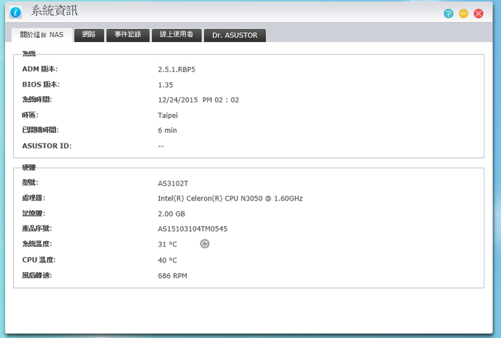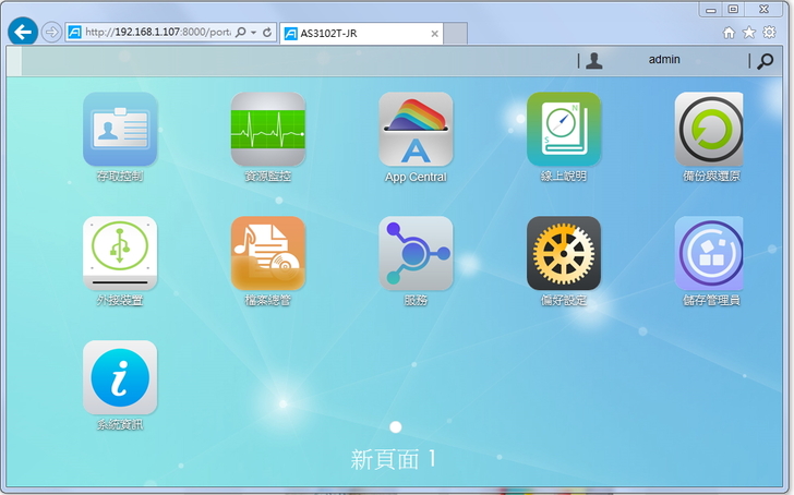 看完了NAS與HHD這二大最重要的硬體設備,接下來幾乎都是軟實力了,而這也是NAS的靈魂,一台NAS好不好用,重點就在它的作業系統,華芸AS3102T採用ADM系統,目前已進化到2.5版。讓我們看一下ADM的操作介面。