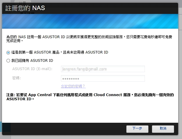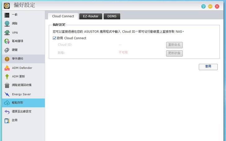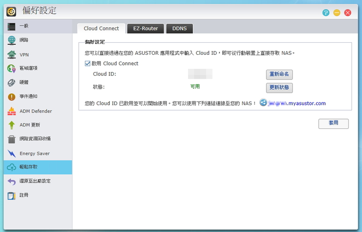 ▲華芸AS3102T的任意地點登入的功能叫作Cloud Connect,要使用這功能前,需要有一個ASUSTOR ID