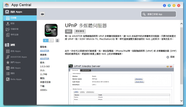 有了媒體伺服器當溝通管道,配合下載中之獲取無限網路資源,再搭配專門在聲音、圖片、影像三個整理與播放的APP,看來華芸AS3102T就像受到了六十年內功的灌入,準備可以大顯身手了。