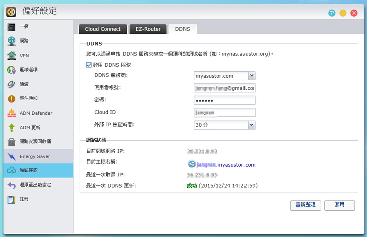 ▲當然上述流程都設好後,其實你一併可以啟用DDNS,這樣就不用記難記的網路位址了