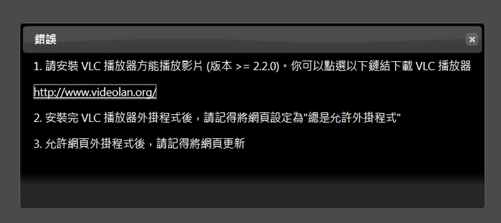 ▲在投放前,要先作些事前準備,一定要在華芸AS3102T安裝開啟LOOKSGOOD這個影片APP,一開始會有格式不支援的情況,只要依照指示安裝VLC即可解決這個問題