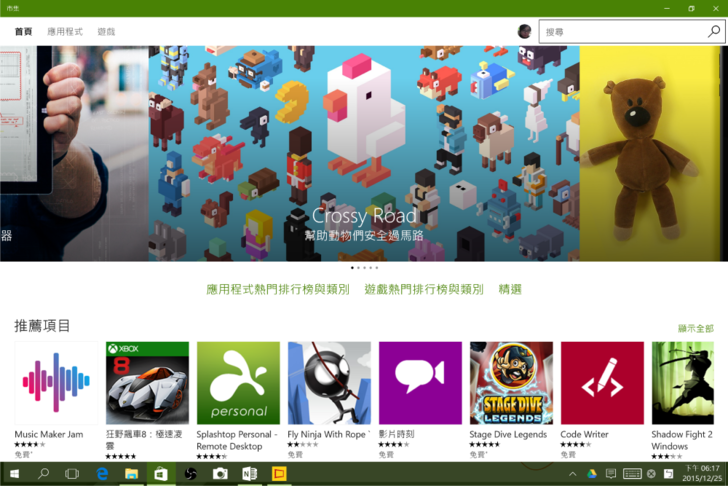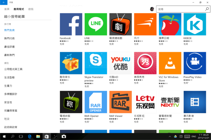 Win 10也可以下載一些平板用的APP,微軟在這點上面算是比較弱項,軟體目前不算非常多,不過很多事務性必裝的軟體都有了,加上電腦本身也能裝上一般的軟體/遊戲,所以在這點上並不是需求很高