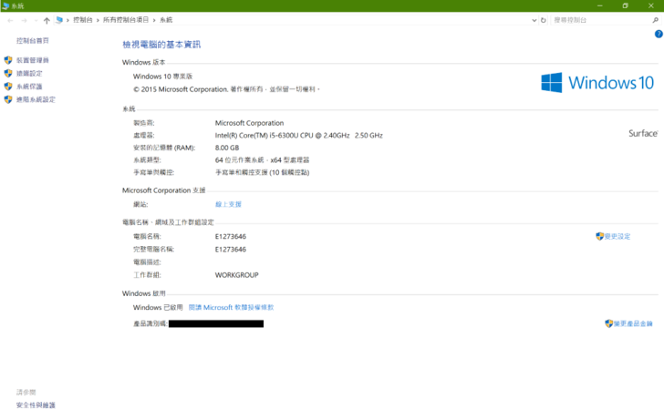 這次借來的SP4是i5/8GB RAM版本,我其實對於硬體號碼代表的高低差不是很了解,所以我也不要獻醜自曝其短了>”< 那些專業跑分就留給別人來測試吧!