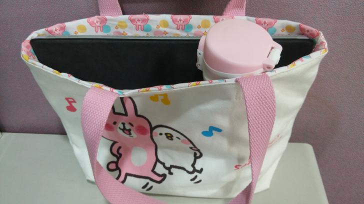 全家最新推出的托特包,超可愛的,原本看起來小小一個,沒想到也裝得下,因為SP4是借來的,我沒有買緩衝內膽,所以用毛巾捲兩圈放進這個托特包也可以輕便攜帶!