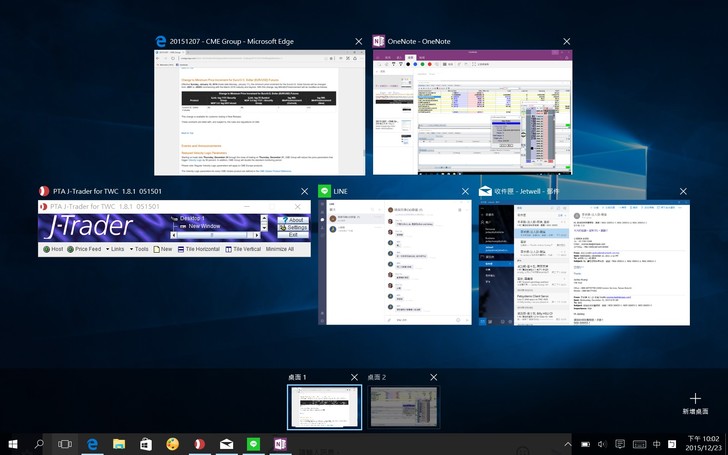 由於Windows 10新增了多重桌面的功能,藉此可利用此多重桌面來進行切換。大大增進工作方便性。