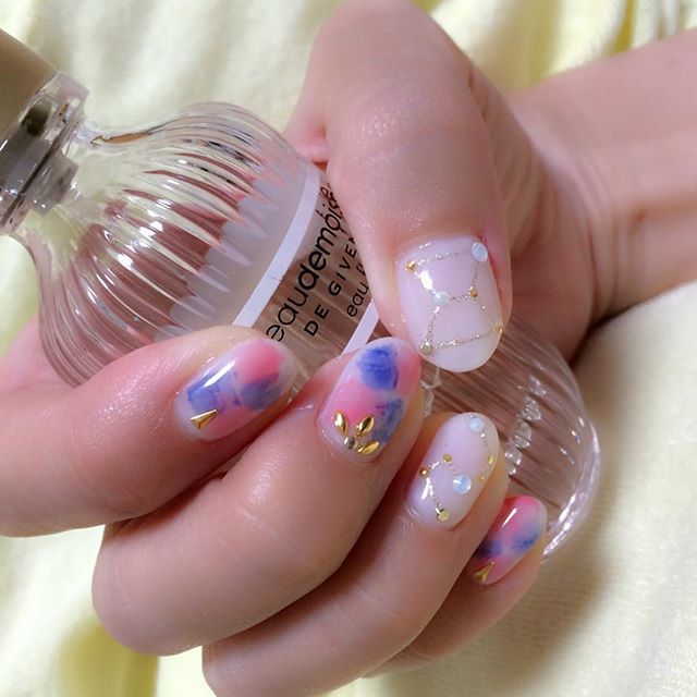 水彩似的暈染手法再點綴上星空,粉嫩的氛圍很適合氣質路線的女孩。