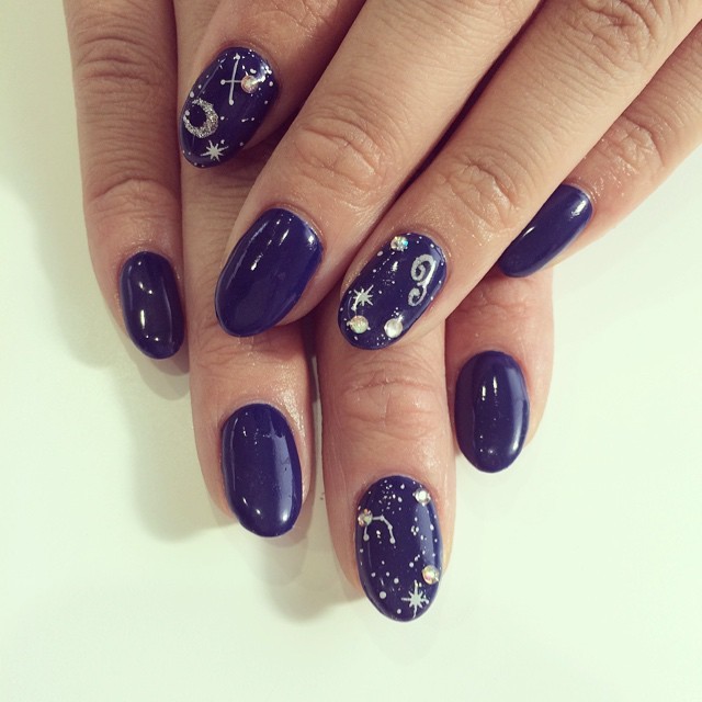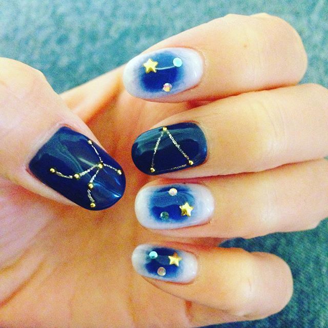 這些指甲彩繪是不是都很美!你只需要挑選喜歡的指甲油顏色當作背景,再貼上星空的美甲貼紙就可以完成,或是找你喜歡的範例,請美甲師幫你打造屬於你的星座美甲❤