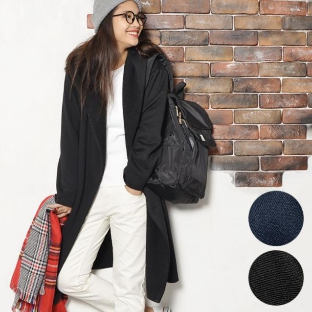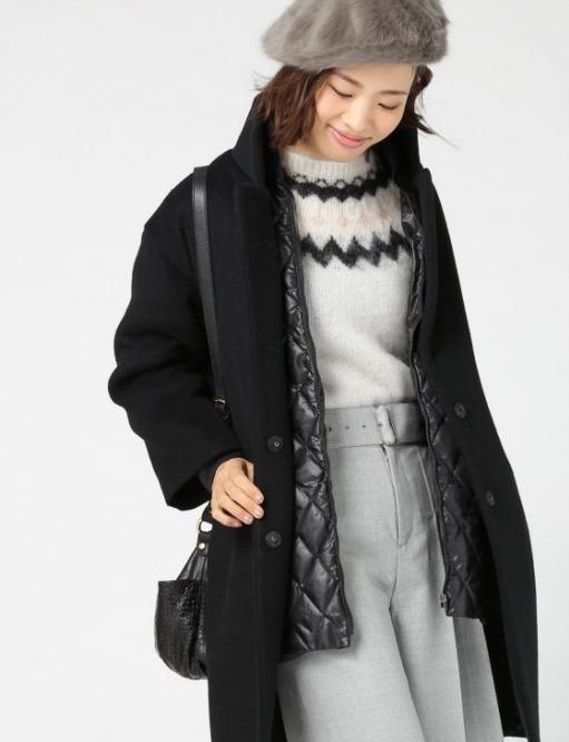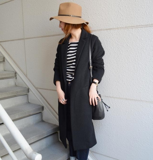 試著肩披黑色長版外套,給人一種和平常不一樣的感覺