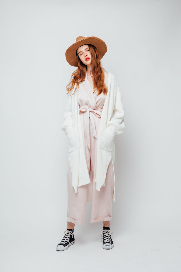 如果你想要追求更有型的穿搭,可以選擇連身褲裝或是裙裝,下身寬鬆的設計有遮腿的效果,整體視覺上看起來也會顯高,只是上廁所比較麻煩就是了。