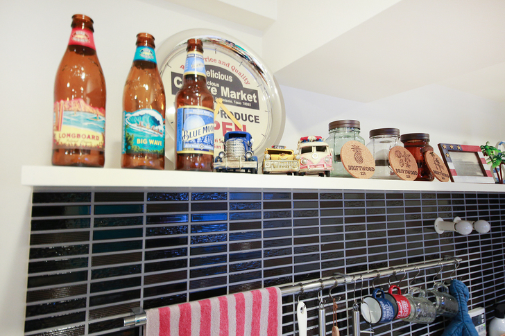 櫥櫃上的小角落也不要空著,擺上一些裝飾品,像是可愛的小玩具或是好看的玻璃瓶等等,有時候生活中用不太到,但有一點質感的東西都可以成為裝飾。