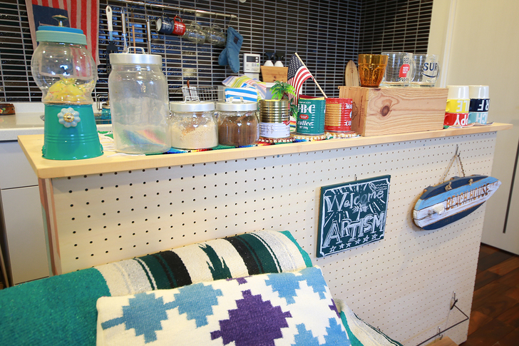 會料理的女孩最在意的一定是廚房的部分,這樣小巧可愛的流理台其實是用簡單的彩色合板所組成的。