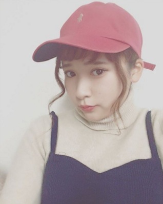 戴上鴨舌帽將前面的瀏海用捲髮器捲過,後面的頭髮紮起來