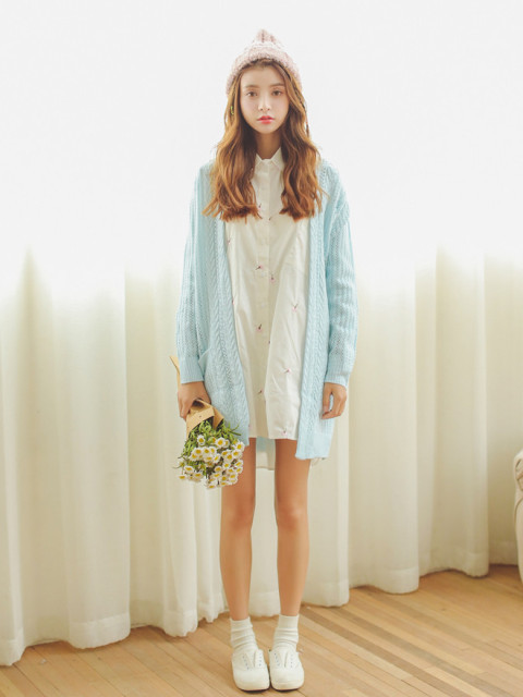 針織毛帽完全適合春天這個微涼的季節!一件式洋裝配上小白鞋就是個男生也會喜歡,富有春天浪漫氣息的女孩感穿搭。