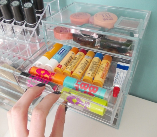 透明的設計幫助我們找到想拿的東西,數個小格子方便我們為用品做分類。