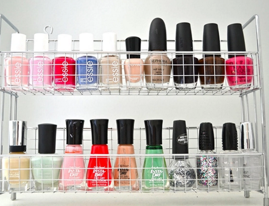瓶型相似的擺在一起,比起收納盒,收納架更適合放指甲油,由於指甲油瓶是易碎品,建議選擇有深度的架子,才不易推倒弄碎。