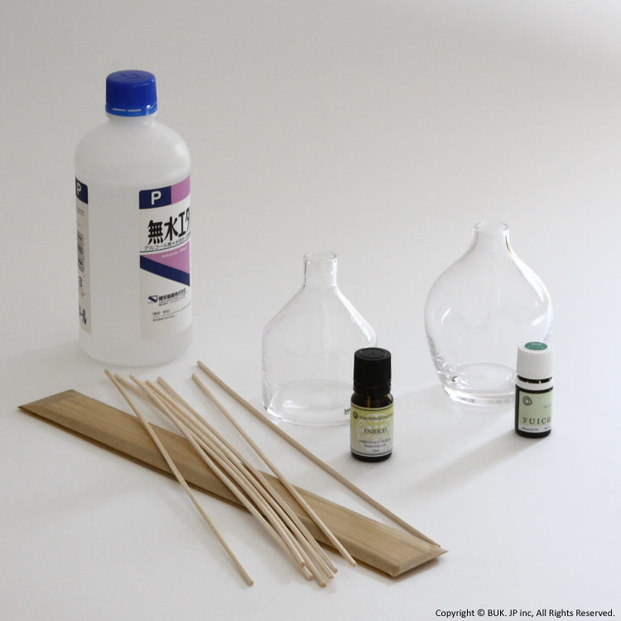 深度夠的瓶子、竹籤、無水酒精、喜歡的精油
