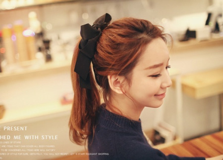 如果懶的編髮,直接綁個俐落的馬尾,加上突出的日系或韓系髮飾、蝴蝶結,其實可愛到炸!!!(如果怕髮飾滑落,裡面可以事先綁個細長的橡皮筋)