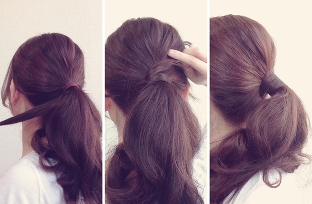 先用細長的橡皮筋綁個簡單的馬尾,接著從馬尾的髮束抓出一小束,髮量大概一手可捉住又不會太多即可。將這一小束頭髮纏繞在橡皮筋的外圍遮住橡皮筋的痕跡,用萬用的小黑長夾固定住即可,如此一來是不是覺得頭髮宛如橡皮筋一般厲害,視覺上多了分層次感呢?