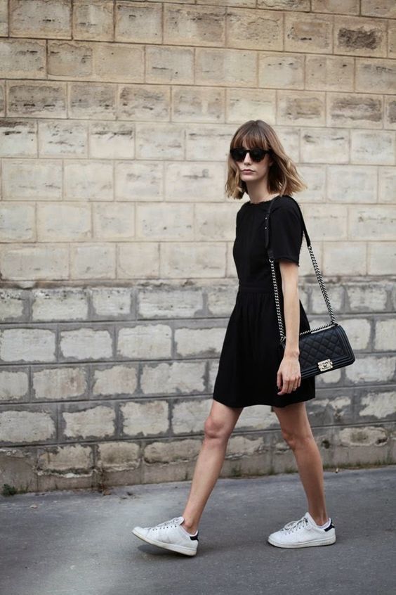 想要保有女人味的你可以這樣搭,就算是運動風也可以運動的很可愛,尤其是氣質類的洋裝配上運動鞋更可以凸顯你的時尚感,近年時尚圈就經常出現這種將截然不同的元素混搭在一起的穿搭,是誰說洋裝只能配高跟鞋?又是誰說運動鞋只能配運動褲?