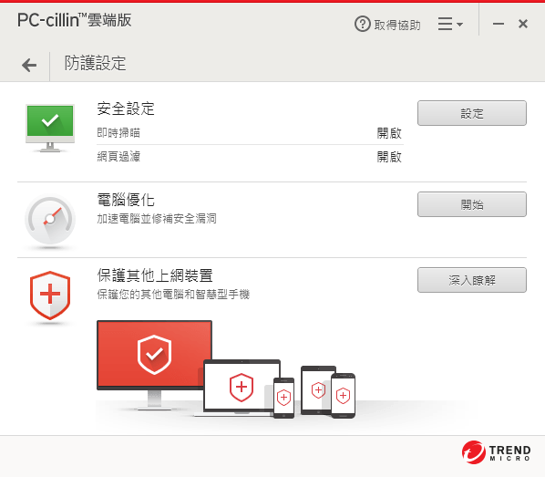 【▼】在防護設定的部分提供有安全設定、電腦優化與保護其他上網裝置三大功能。