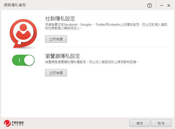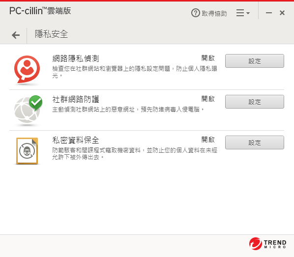 【▼】在隱私安全的部分,有網路隱私偵測、社群網路防護與私密資料保全三大功能。