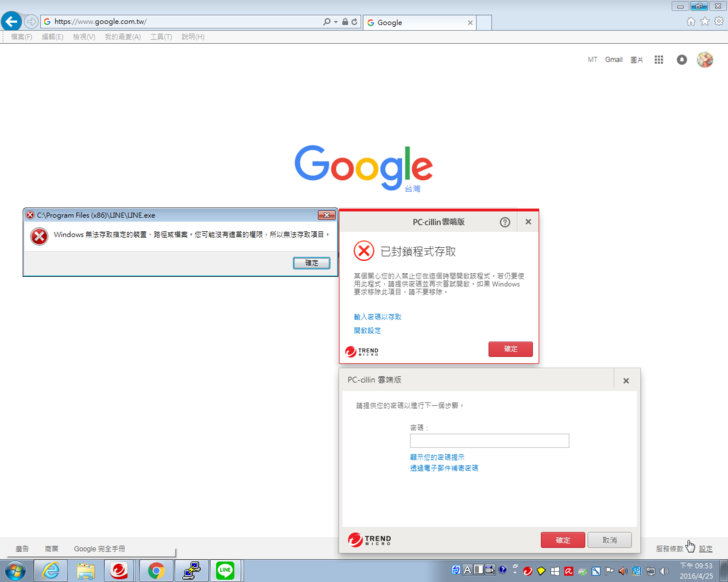 【▼】小編試著把Line給封鎖,果然執行時就會出現無法存取的訊息,必須輸入密碼才行。
