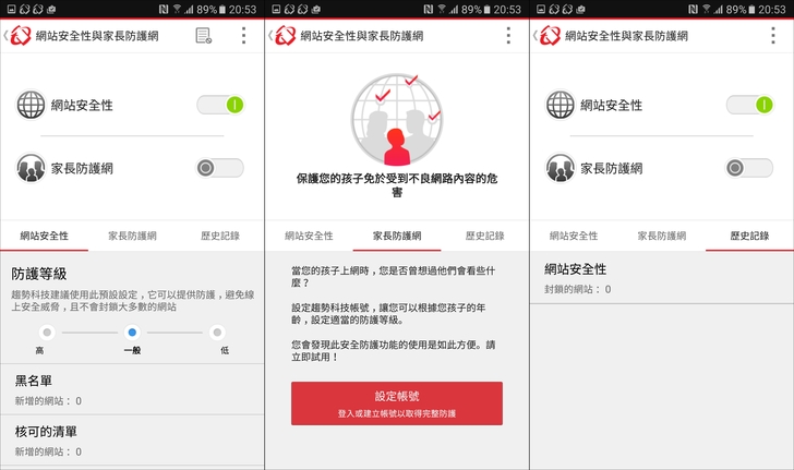 【▼】網站安全性與家長防護網,能讓家長設定網站白名單與黑名單,並查閱小朋友上過網站的歷史紀錄,這邊建議先設定家長帳號以取得完整防護,免得小朋友自己關閉該功能就沒有太大意義了。