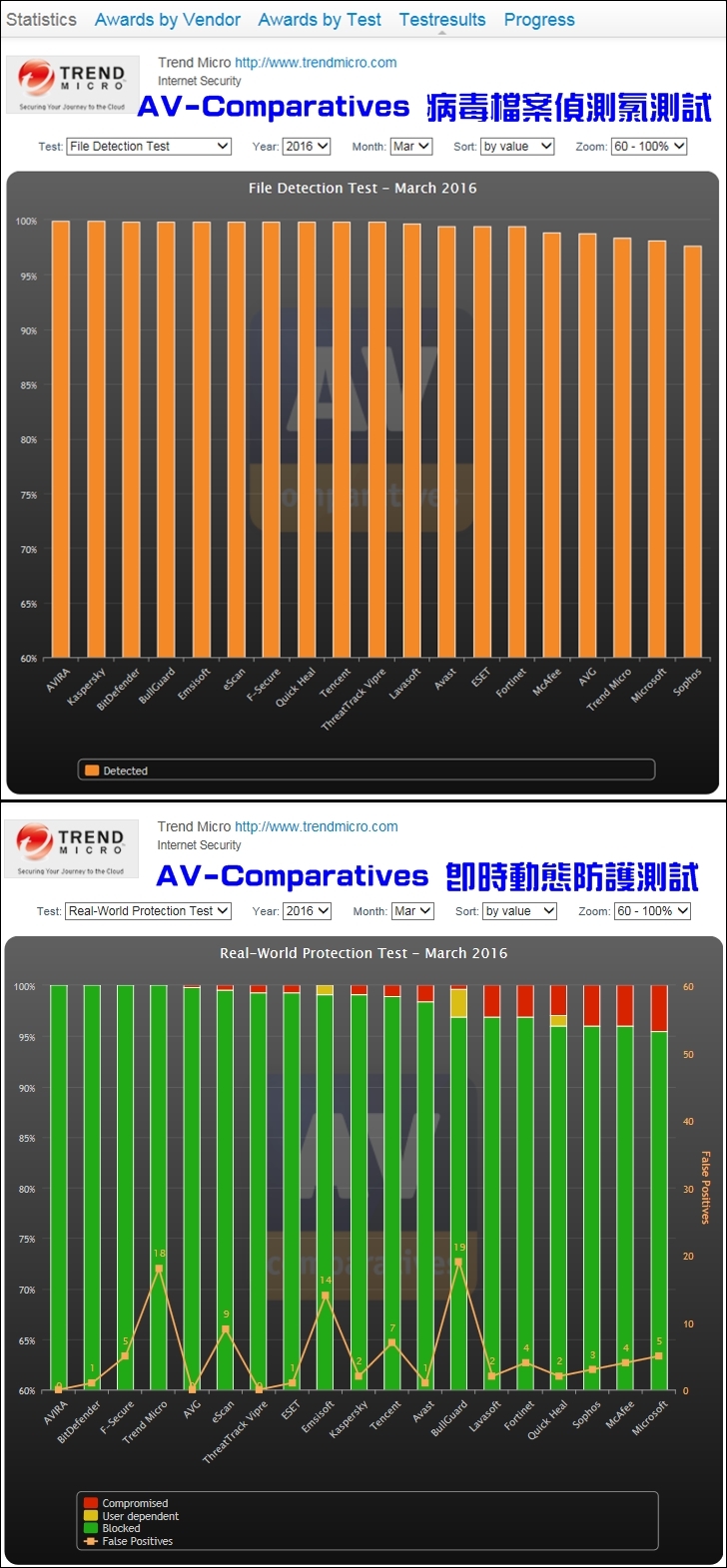 【▼】最後附上AV-Comparatives 動態及偵測率測試供大家參考。
