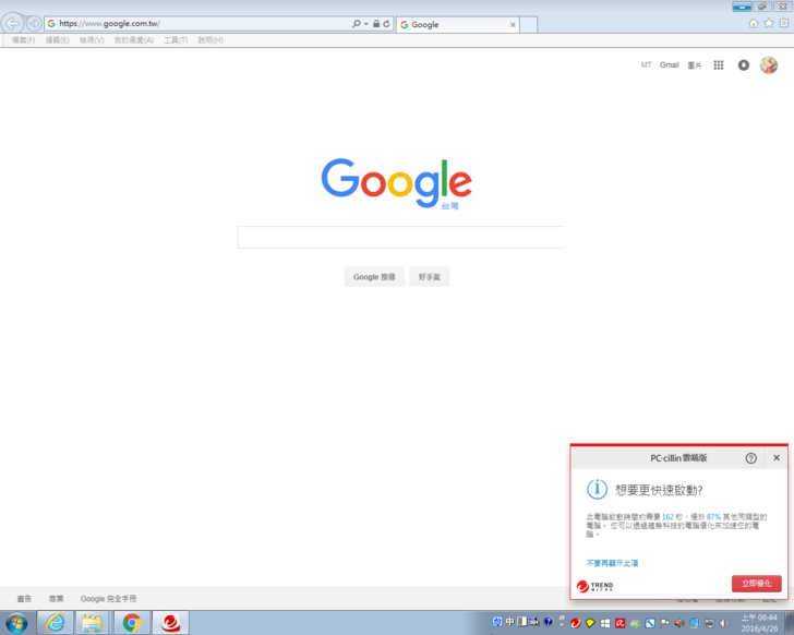 【▼】不過若系統自己覺得慢,PC-cillin 2016雲端版首當其衝也會跳出是否要最佳化的訊息,所以PC-cillin 2016雲端版真的是貼心的好管家呀~