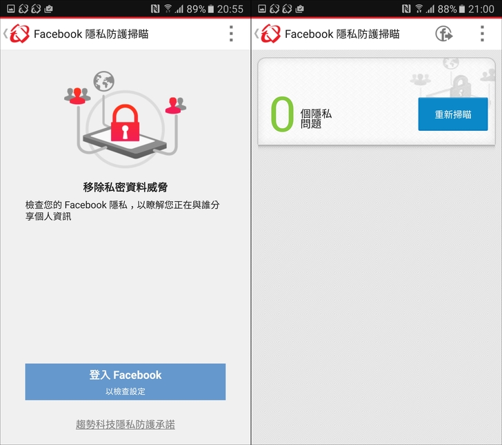 【▼】臉書的隱私防護檢測,這部分能檢測您在臉書上所分享的資訊是屬於公開、朋友或是自訂,並移除可能的私密資料威脅,基本上提示的功能小編覺得還不賴,不然朋友一多,有時分享資訊給錯人,輕則造成洩密,重則造成爭議可就不好了。