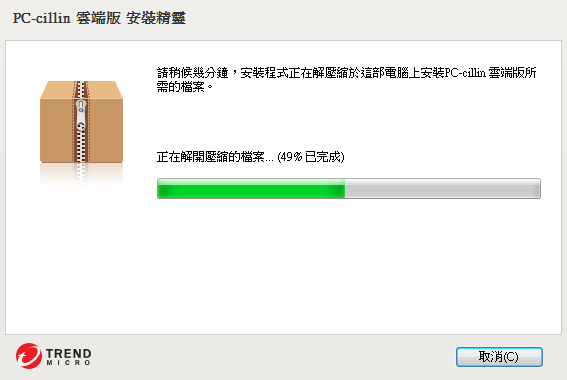 【▼】下載完的PC-cillin 2016雲端版是屬於打包式的壓縮檔,所以執行後會先進行解壓縮的動作。