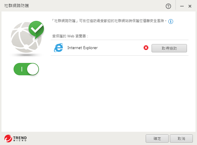 【▼】社群網路防護能主動偵測社群網站中被人貼地的惡意網址、預先防堵病毒入侵電腦,受保護的瀏覽器有IE、Firefox與Chrome。