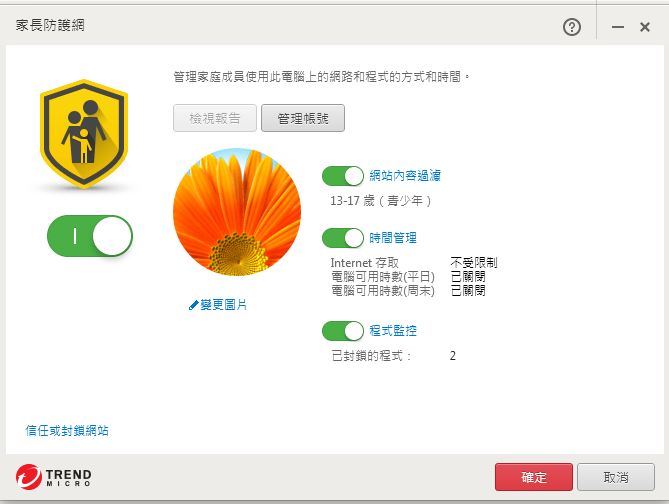 【▼】在家長防護網的部分,可以給孩子一個乾淨的上網空間,並適時的時間管理,避免孩子一上網就忘記時間;另外這功能能輕鬆記錄孩子們的線上活動(例如交友、逛過的網站或玩哪類型的遊戲),並不會拖累系統的資源。不過小編覺得最好也和孩子溝通過,不然孩子長大會有自己的想法,搞成家庭革命也失去該軟體當初的美意了。
